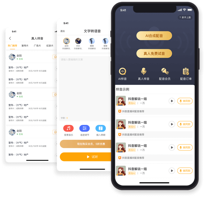 影視解說模式、自定義背景音、特效音、變聲、語速可調(diào)、智能斷句、多音字糾錯